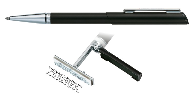 Propisovací tužka HERI Diagonal s vestavěným razítkem až pro 3 řádky textu.